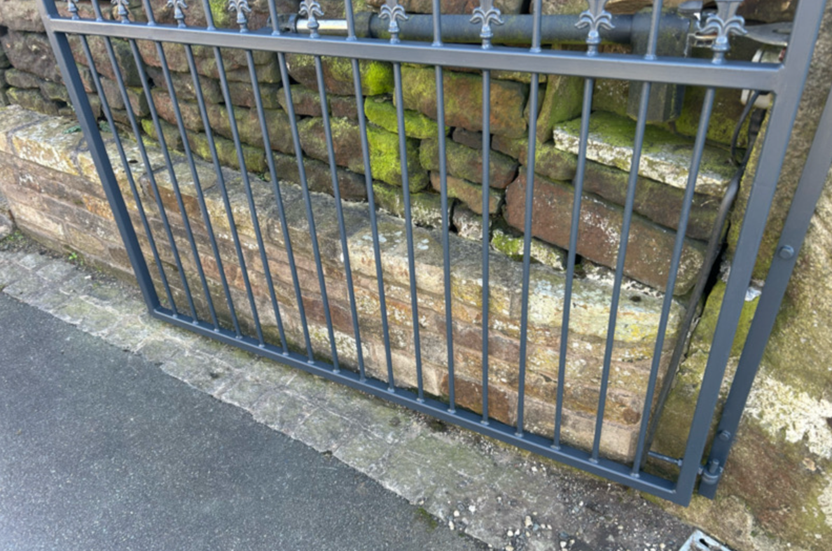 Our engineers prepared six new solid steel bars (12mm diameter, 80cm length), which were galvanised and powder-coated in Anthracite Grey RAL 7016 to match the existing gates.